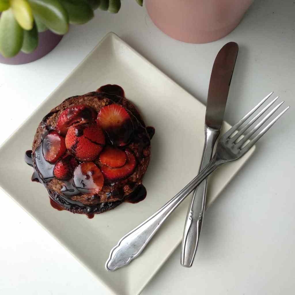 No he querido dejar cantidades porque esto va según gustos o las cantidades de tortitas que cada una quiera. Es muy sencilla, tenemos que aplastar los plátanos con ayuda de un tenedor e ir añadiendo la avena, puedes triturarla o dejarla tal cual. Aunque hay muchas recetas en las que añaden leche, así quedan muy ricas. Cuando tengas la avena y el plátano bien integrados, unta una sartén con un poco de aceite y ve añadiendo la masa. Dale la vuelta para que se haga por ambos lados y ten cuidado de que no se pegue. Las servimos en un plato y echamos sirope por encima, como podéis ver en la foto, yo usé de chocolate y puse fresas troceadas por encima.